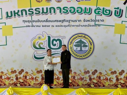 วันพฤหัสบดีที่ 12 มีนาคม 2569 ณ หอประชุมที่ว่าการอำเภอเมืองตราด ตำบลหนองเสม็ด อำเภอเมืองตราด จังหวัดตราด ได้จัดกิจกรรม “มหกรรมการออม 52 ปี ทุนชุมชนขับเคลื่อนเศรษฐกิจฐานราก” เพื่อส่งเสริมและสนับสนุนการดำเนินงานของกลุ่มออมทรัพย์เพื่อการผลิต ซึ่งเป็นกลไกสำคัญในการเสริมสร้างความเข้มแข็งของเศรษฐกิจฐานรากและการพัฒนาชุมชนอย่างยั่งยืน
